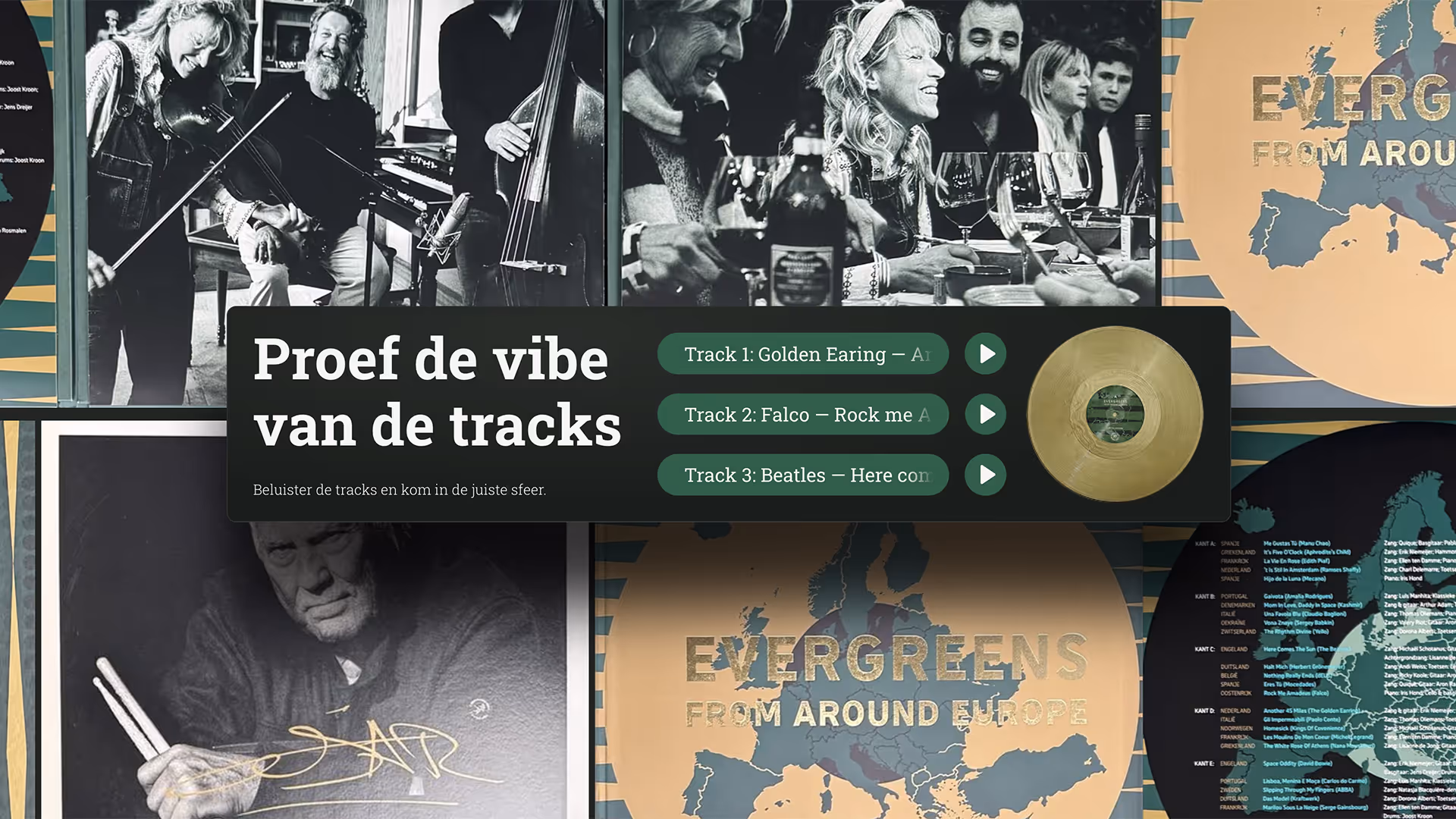 Big Green Egg, bekend van de groene, eivormige bbq's, diversifieerde zijn aanbod tijdelijk met een echte smaakmaker. De naam? Evergreens from around Europe: een exclusieve celebration box voor liefhebbers van buiten koken, smaak, muziek en samenzijn. De box bevat drie onderdelen: een receptenboek, een muziekboek én drie goudkleurige lp’s met evergreens (tijdloos lied, populair onder meerdere generaties). De kwaliteit was onmiskenbaar, maar de verkoop bleef achter. ZUID en Big Green Egg sloegen de handen ineen om het tij te keren. We maakten van de online communicatiemiddelen een echte ervaring. Een voorproefje van het luxe, driedelige pakket dat meerdere zintuigen prikkelt en bij de specifieke doelgroep naar meer smaakt.