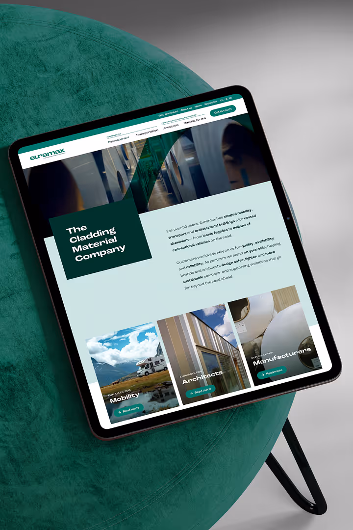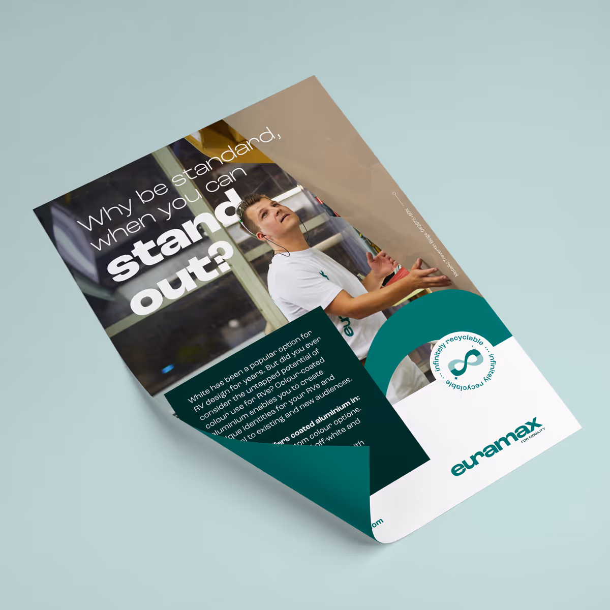 Euramax wilde meer zijn dan een producent van gecoat aluminium. De ambitie: aluminium positioneren als hét voorkeursmateriaal voor RV’s en gebouwen, en Euramax neerzetten als dé kennis- en samenwerkingspartner. Niet alleen voor OEM’s, maar ook voor architecten, dealers, fabrikanten en zelfs eindgebruikers. Als verlengstuk van de organisatie hielp ZUID Euramax aan een merk dat wordt herkend, vertrouwd en actief verkozen. Daarnaast zetten we ons in om de bekendheid van aluminium als constructiemateriaal voor wanden te vergroten. In de hoofden van alle doelgroepen.